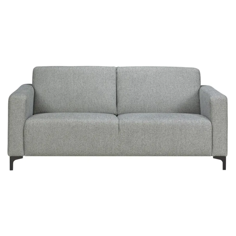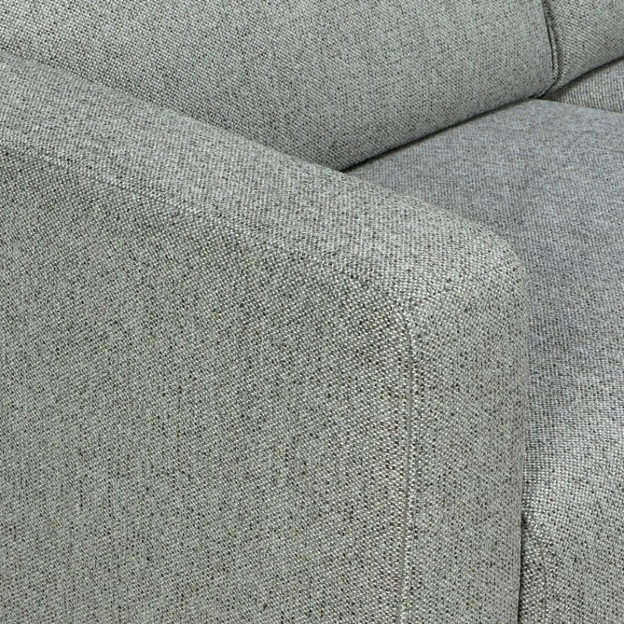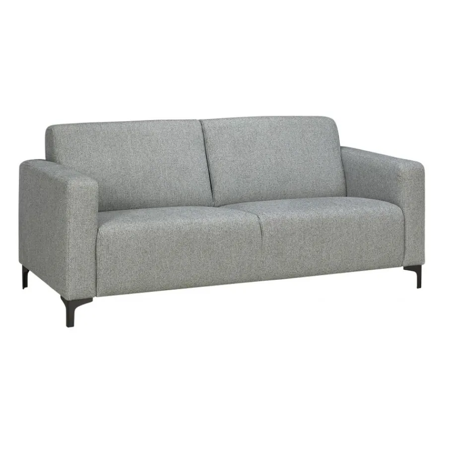 De 2,5-zitsbank Ameland is bekleed met stof Fermo. Deze geweven structuurstof is gemaakt van 100% polyester. De zachte stof in kleur Sky is een gemêleerde grijstint.