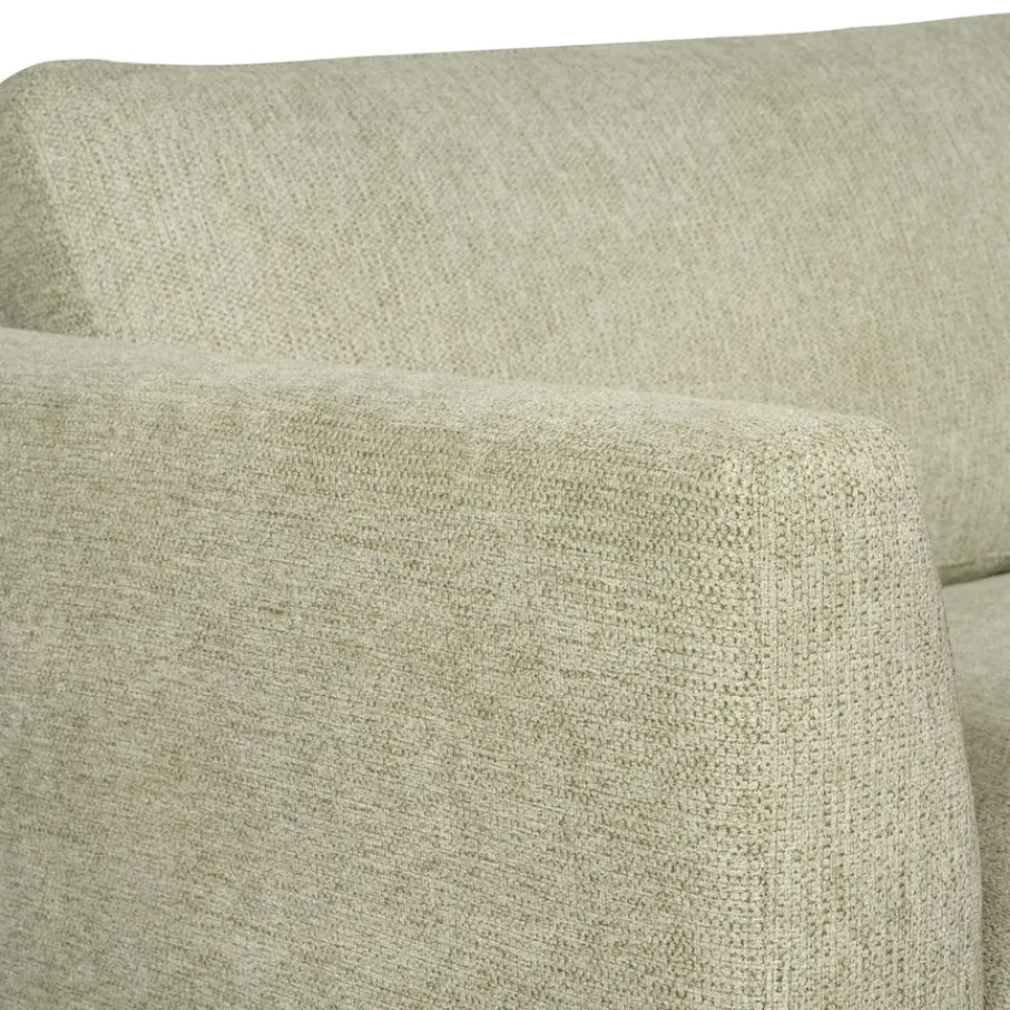 De bank is bekleed met stof Mito in kleur Light Green. Dit is een grove stof van 100% polyester in een moderne groentint. De stof heeft een rijke structuur, en is sterk en goed kleurvast.