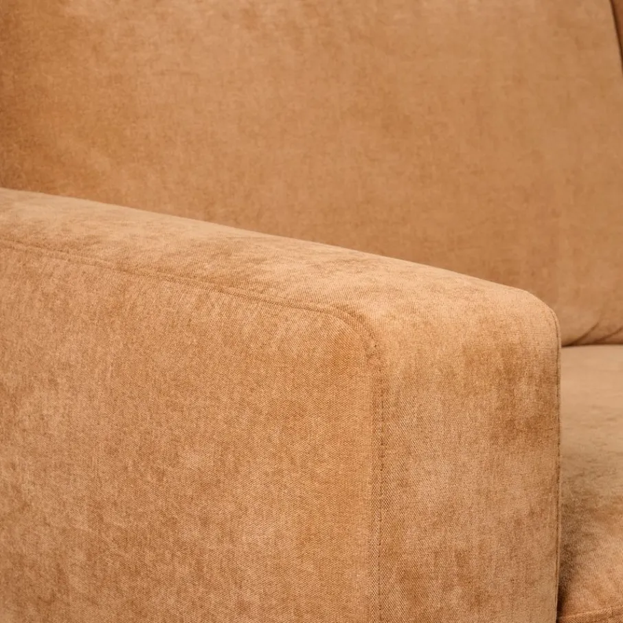 Niet alleen van binnen, ook van buiten is hoekbank Vibe een echte topper. De chenille bekleding heeft een fijne weving en is gemaakt van 100% polyester. De cognac kleur is een warme bruintint die makkelijk te combineren is. Het nodigt uit tot lekker loungen en is bovendien gemaakt om lang mooi te blijven. De zwart metalen poten geven de bank een moderne touch en zorgen voor een stabiele basis.