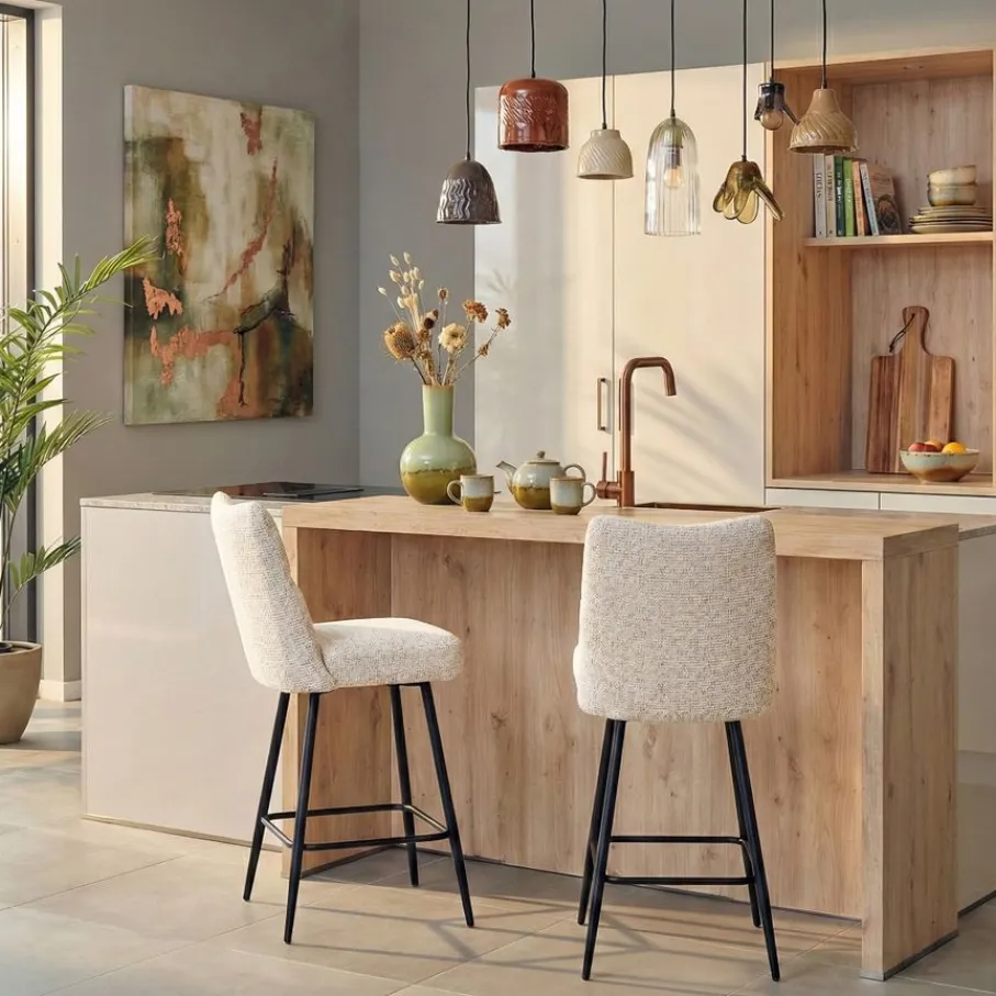 - Vaste zitpositie: De barkruk staat stevig op zijn plek, wat bijdraagt aan de stabiliteit en een rustige look.