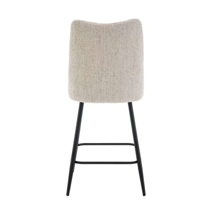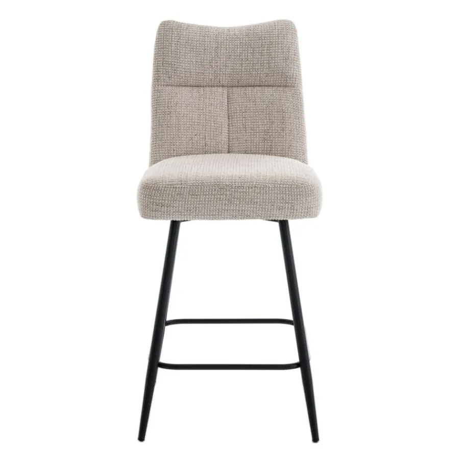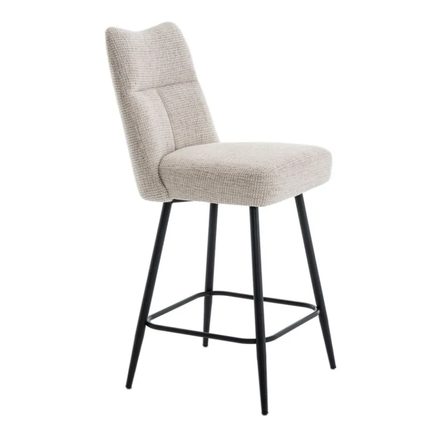 Barkruk Becca is bekleed met een prachtige textielstof in een warme crème kleur. Deze neutrale tint past naadloos in vrijwel elk interieur en geeft je ruimte direct een lichte en open uitstraling. De zwarte metalen poten vormen een mooi contrast en zorgen voor een strakke, moderne touch.