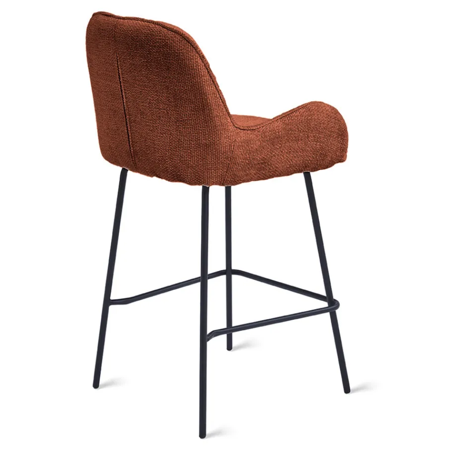 De bekleding van barkruk Berend heeft een geweven structuur en voelt heerlijk zacht aan. Deze Haga stof is gemaakt van 100% polyester en heeft een Martindale van 60.00. Hiermee is het een sterk en slijtvast materiaal. De roest kleur is een rood/bruine tint.
