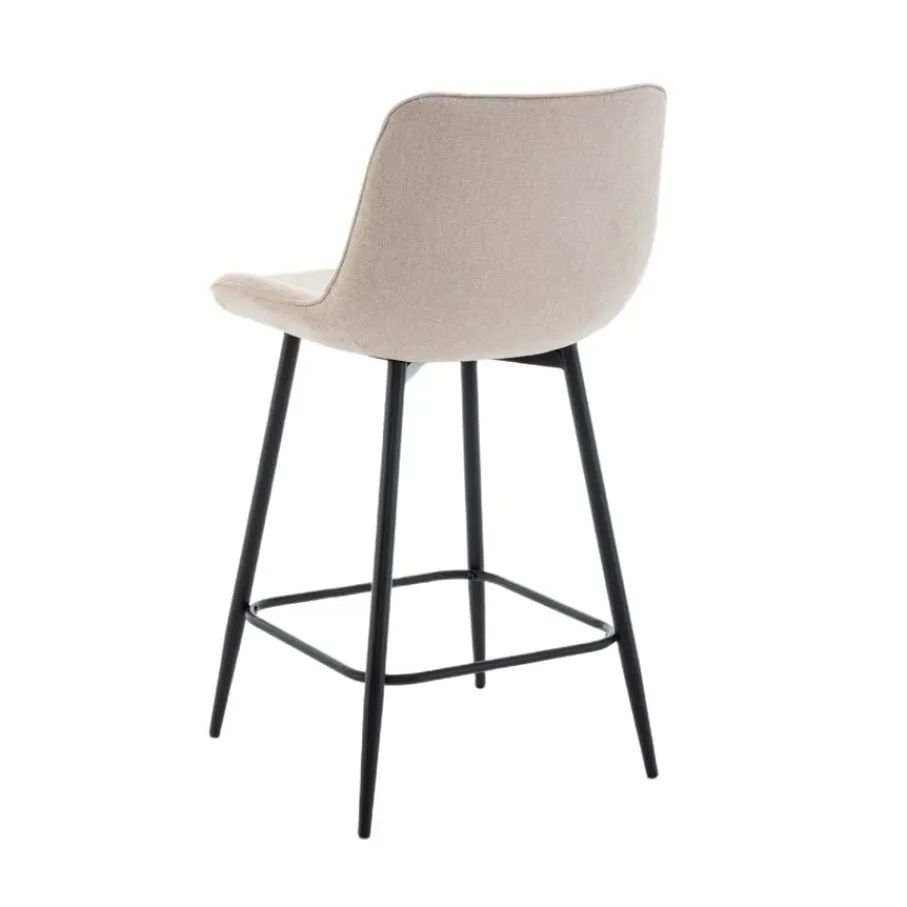 Geef jouw keuken of bar een stijlvolle upgrade met barkruk Fay! Deze fijne barkruk, bekleed met een zachte structuurstof in trendy crème kleur, straalt pure gezelligheid uit. De combinatie met de stoere zwarte metalen poten geeft barkruk Fay een moderne en toch warme uitstraling. Perfect voor lange, gezellige avonden aan het eiland of een snelle koffie in de ochtend.