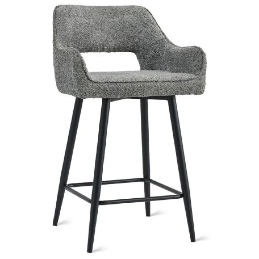 De zachte bekleding omhult barkruk Kegan en geeft je het gevoel van luxe. De stof heeft een rijke, weelderige structuur en zorgt voor een sfeervolle look. De antraciet grijze kleur is modern en goed te combineren.