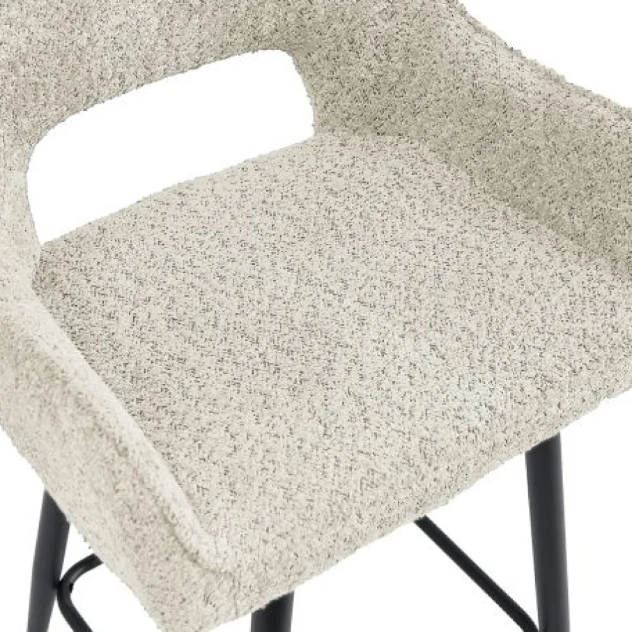 De zachte bekleding omhult barkruk Kegan en geeft je het gevoel van luxe. De stof heeft een rijke, weelderige structuur en zorgt voor een sfeervolle look. De beige kleur is een lichte, romige kleur en goed te combineren.
