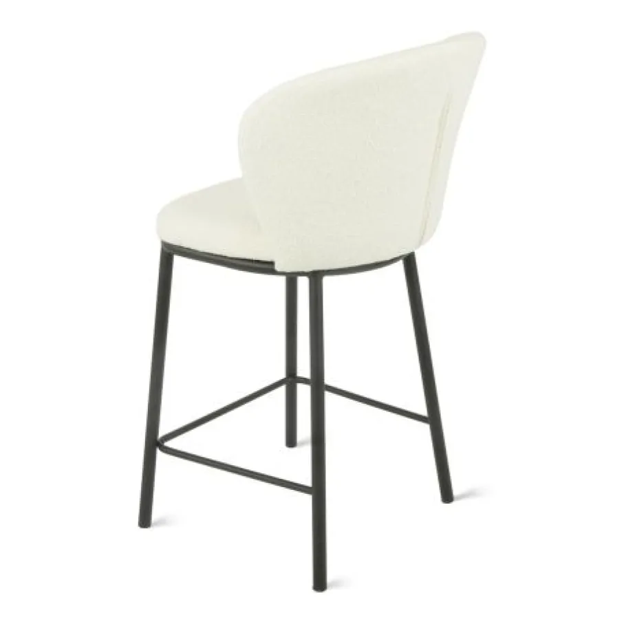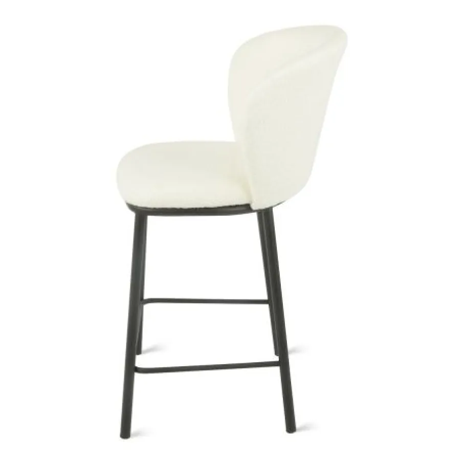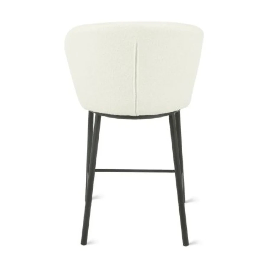 De barkruk is bekleed met bouclé stof, gemaakt van 95% polyester en 5% wol. Dit materiaal heeft een rijke structuur, is heerlijk zacht en de ivoorkleur is makkelijk te combineren.