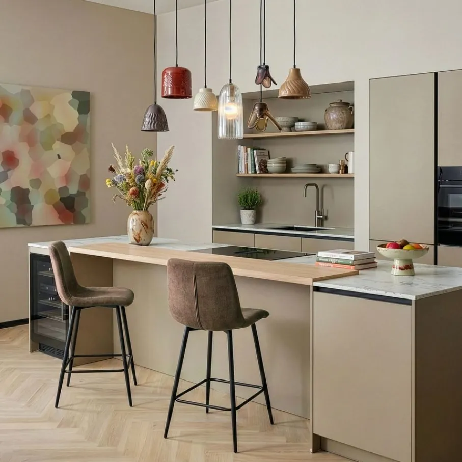 - Vaste zithoogte: Met een zithoogte van 65 cm is deze barkruk ideaal voor standaard kookeilanden en bartafels.