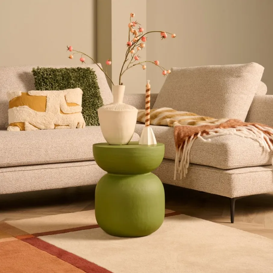 - Brengt direct sfeer in huis: Met zijn unieke, matte groene kleur en robuuste uitstraling voegt bijzettafel Bregenz meteen gezelligheid en karakter toe aan elke ruimte.
