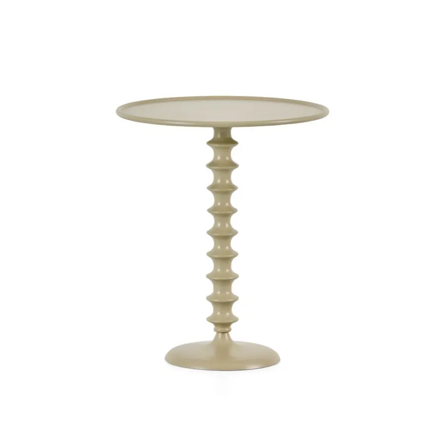 - Een speelse twist in je interieur: Met zijn unieke gedraaide poot en ronde blad is bijzettafel Marty een moderne blikvanger die direct karakter toevoegt aan jouw woonruimte.