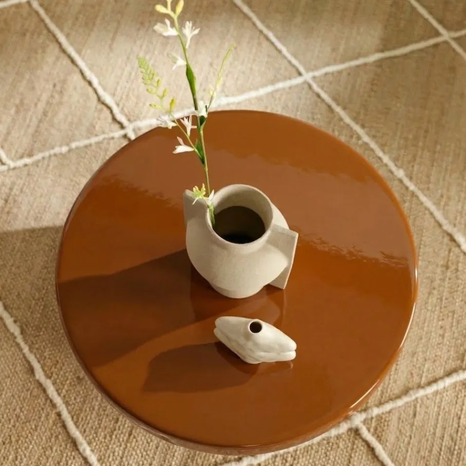 - De ronde vorm is het middelpunt: Deze elegante ronde bijzettafel komt het meest tot zijn recht als je hem de ruimte geeft om te shinen en niet strak in een hoekje hoeft te staan.