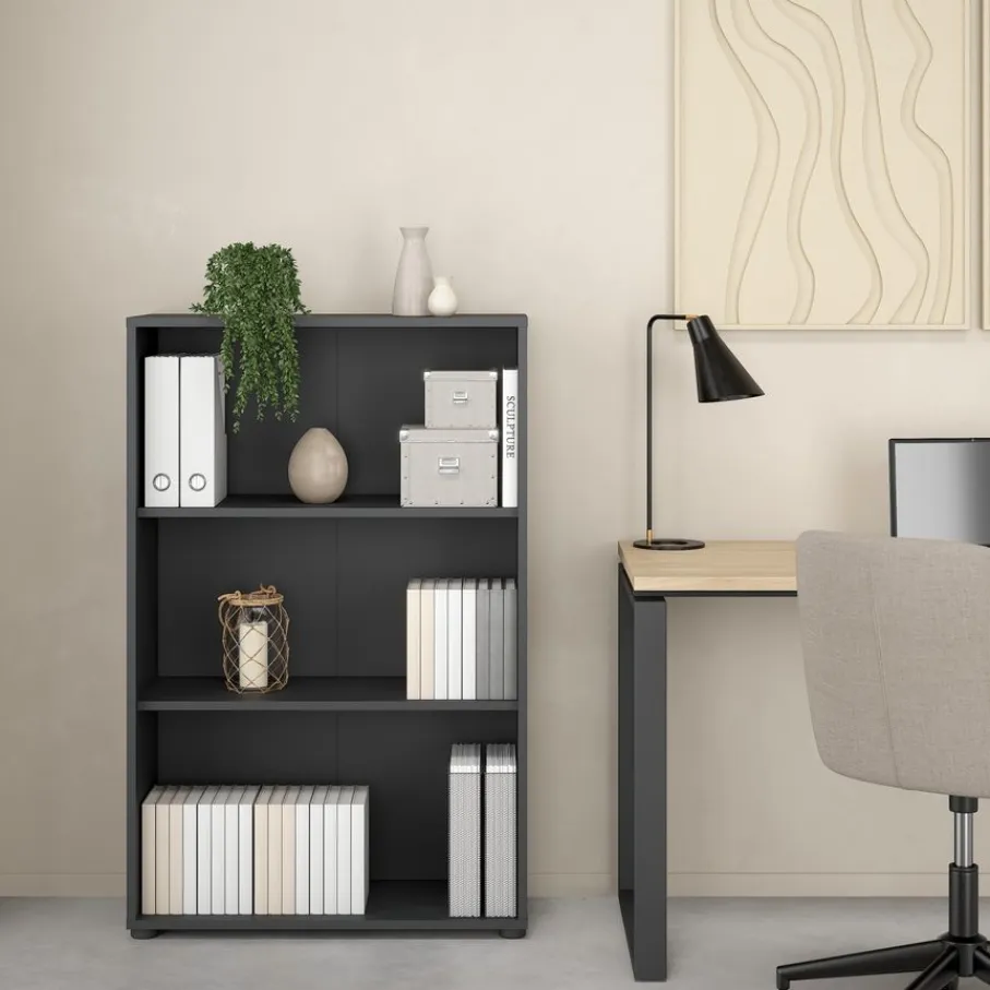 Boekenkast Bram is praktisch ingedeeld met drie ruime vakken. Hier kun je je boeken, souvenirs en andere lievelingsitems een plek geven. Dankzij het strakke design past de kast perfect in zowel moderne als klassieke interieurs.