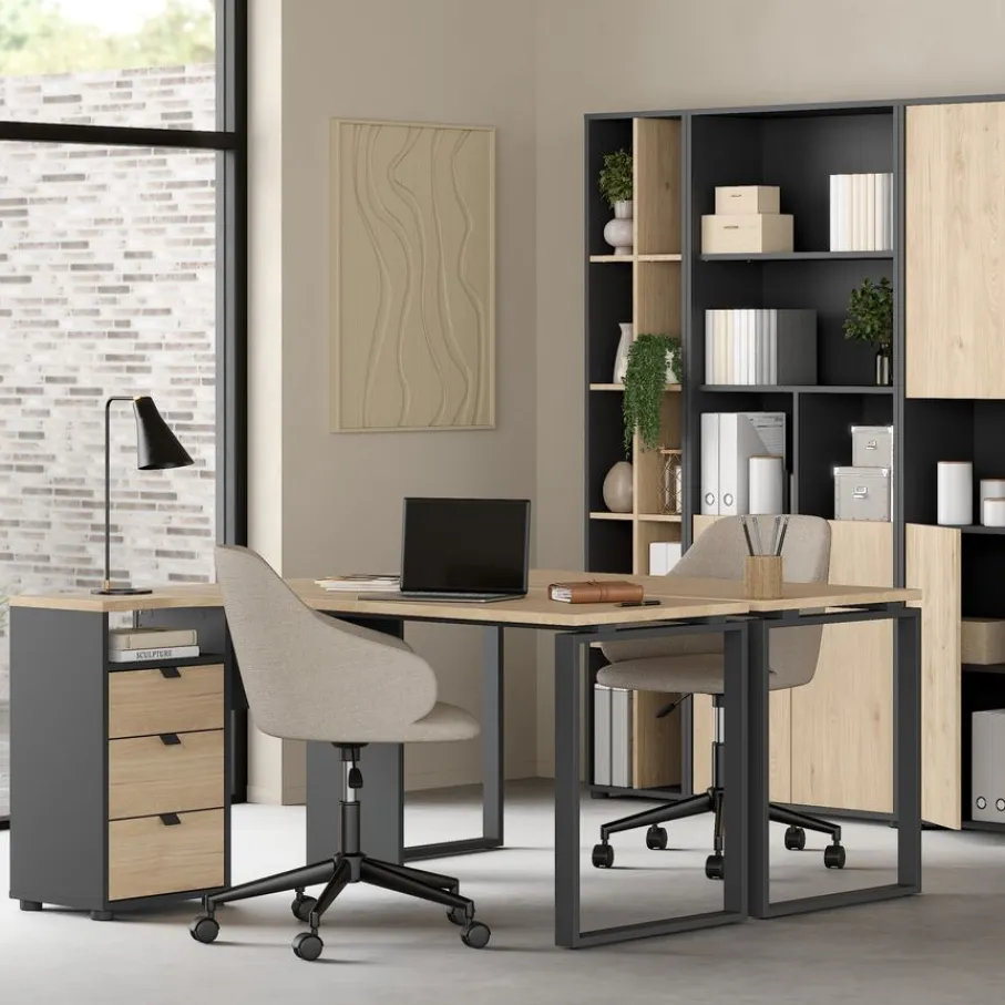 - Voeg direct stijl toe aan je interieur met de trendy combinatie van donkergrijs en een warme eiken houtlook.