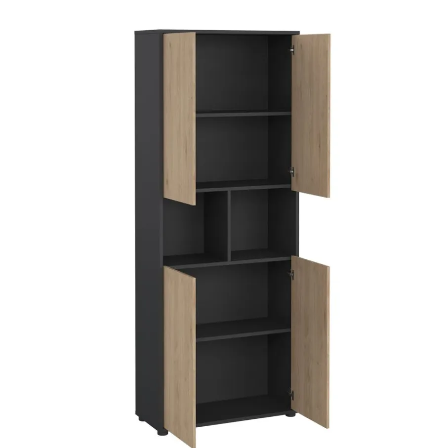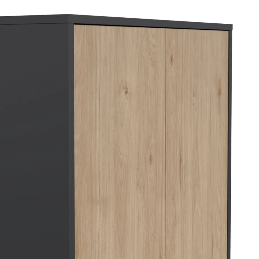 - Geef je interieur direct een moderne make-over met het strakke design en de stijlvolle combinatie van donkergrijs en eiken houtlook.