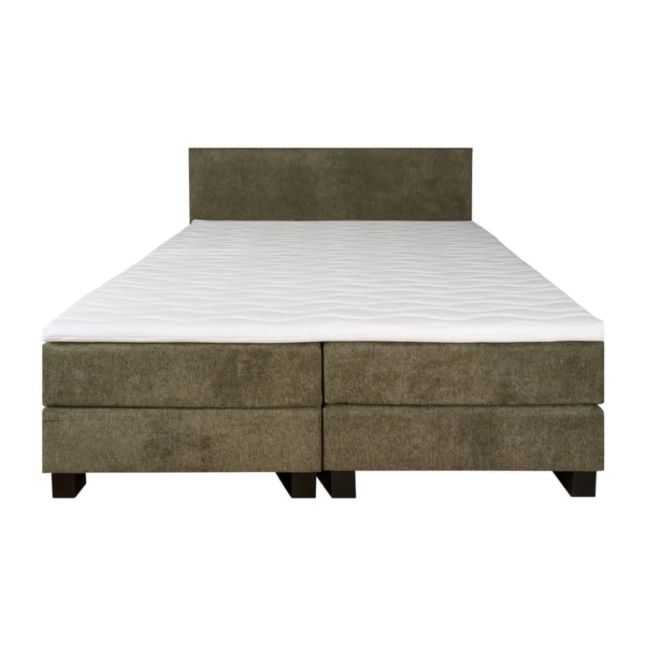 Boxspring Valencia is bekleed met stof Mito. Dit is een fluweelzachte stof van 100% polyester met een wafelachtige structuur. Een sterk materiaal dat niet snel verkleurd. De kleur is Hunter, een mooie natuurlijke groene tint. De matrassen en het topmatras hebben afritsbare hoezen.