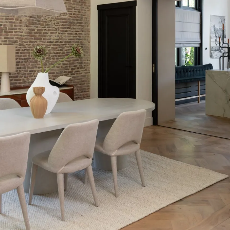 - De platte weving geeft een strakke, eigentijdse uitstraling. Als er een voorkeur is voor een extreem hoogpolig en dik kleed, dan past deze subtiele look mogelijk minder goed bij de verwachting.