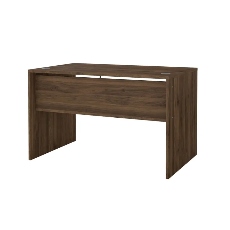 - Creëer direct een sfeervolle en moderne werkplek met dit strakke bureau in een warme walnoot houtlook.