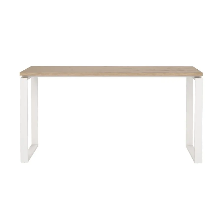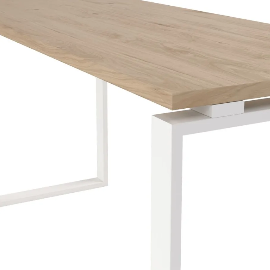 - Eiken houtlook met strak wit metalen onderstel