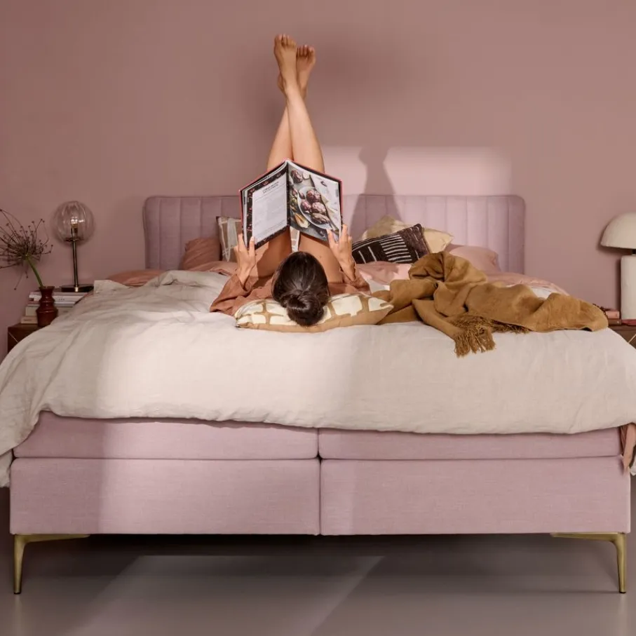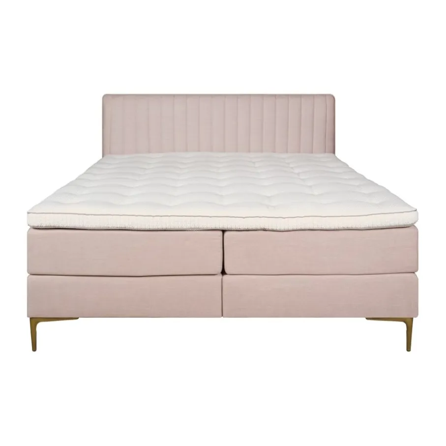 - Direct sfeer in huis: De zachtroze bekleding met fijne textuur en de stijlvolle goudkleurige metalen poten geven je slaapkamer een knusse en moderne uitstraling.