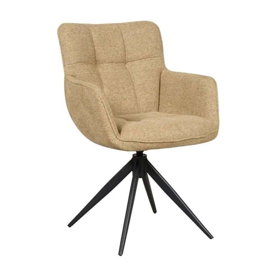 Ultiem zitcomfort staat voorop bij deze stoel. Dankzij de stevige polyether vulling in zowel de zitting als de rugleuning zit je altijd fijn, zelfs tijdens lange diners of werksessies. Maak je geen zorgen over de stabiliteit, de zwarte metalen poten zorgen voor een stevige basis. En daarbij is deze ook nog eens draaibaar, dat zorgt voor extra comfort.