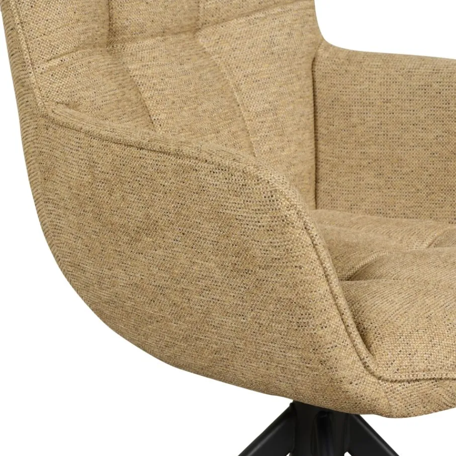 De bekleding is een zachte structuur stof, gemaakt van 100% polyester en duurzaam in gebruik. De kleur Mustard is een warme geeltint met een subtiele kleurnuance. De zitting is afgewerkt met een elegant carré-stiksel.