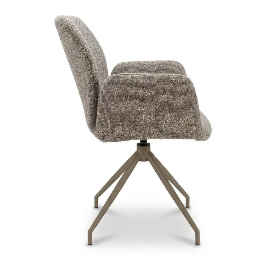 Maak je eetkamer compleet met de prachtige draaibare Borup eetkamerstoel. Deze armstoel is een echte blikvanger aan elke eettafel en brengt een warme, uitnodigende sfeer in huis. Het combineert een grijs/beige metalen onderstel met een robuuste stof, perfect om urenlang gezellig te tafelen met vrienden en familie. Met Borup haal je een stoel in huis die zowel qua stijl als comfort helemaal af is, zodat elke maaltijd een feestje wordt.