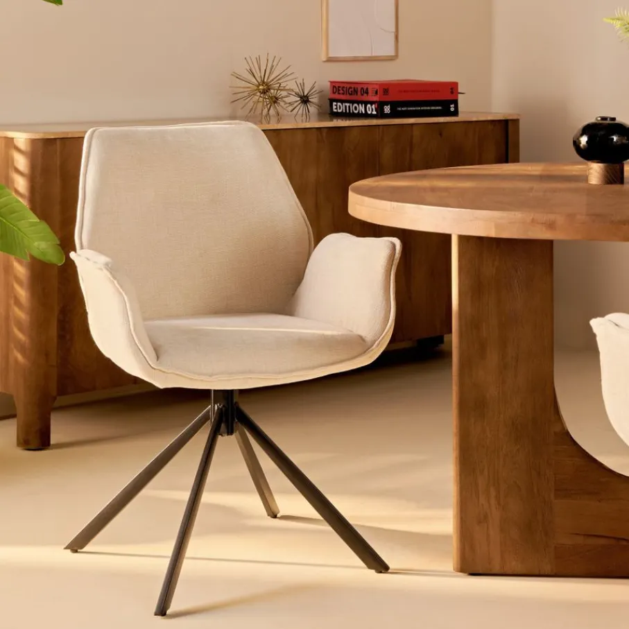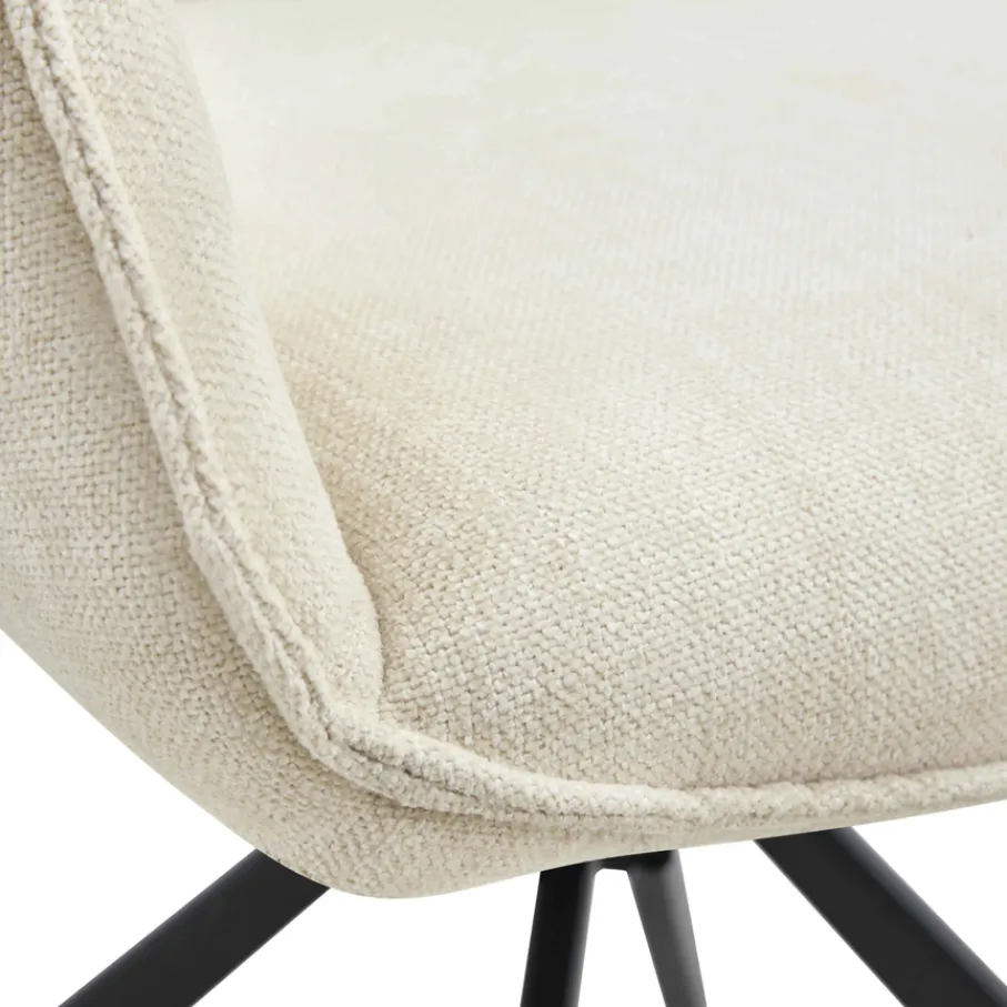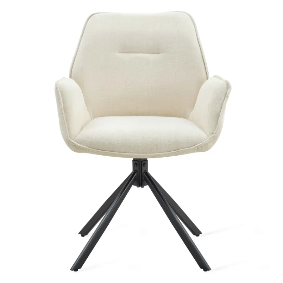 - Robuust en modern: De stabiele zwarte metalen draaipoot zorgt voor een stevige basis en geeft de stoel een eigentijdse look. Een echte blikvanger aan je eettafel!
