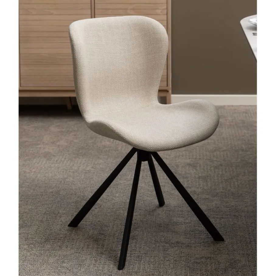 Deze draaibare stoel is bekleed met stof Basel, een materiaal met een mooie geweven structuur. Een slijtvaste en sterke stof van 100% polyester. De gemêleerde beige kleur is modern en stijlvol en combineert makkelijk.