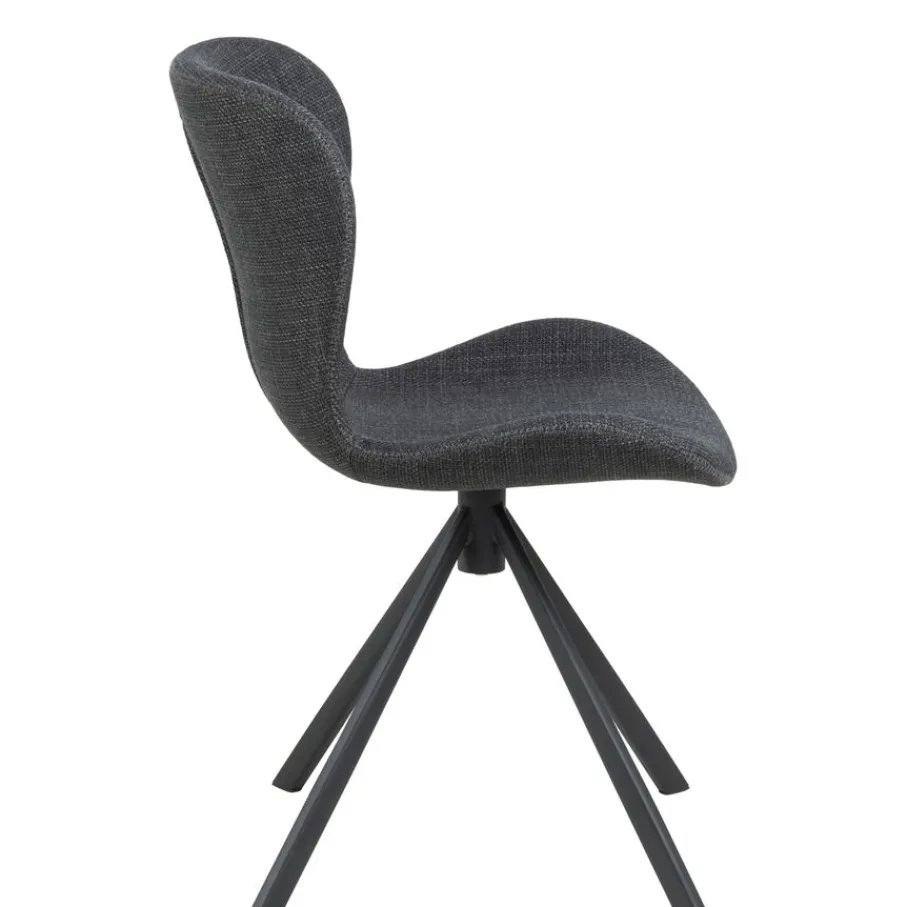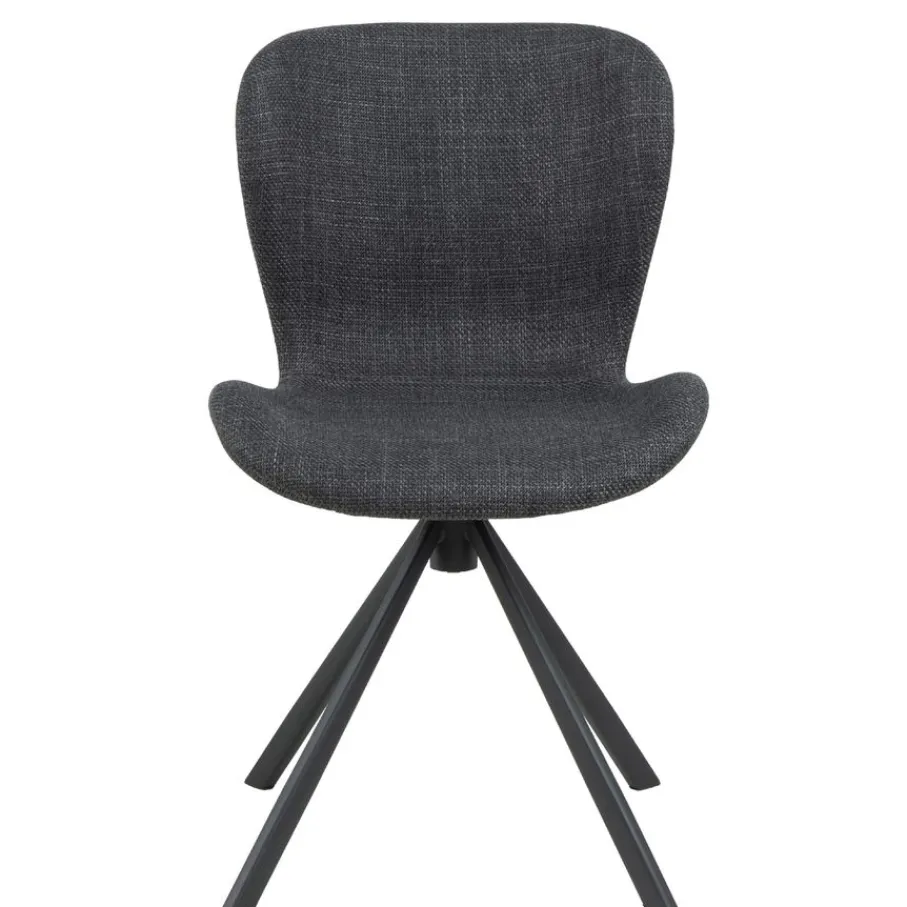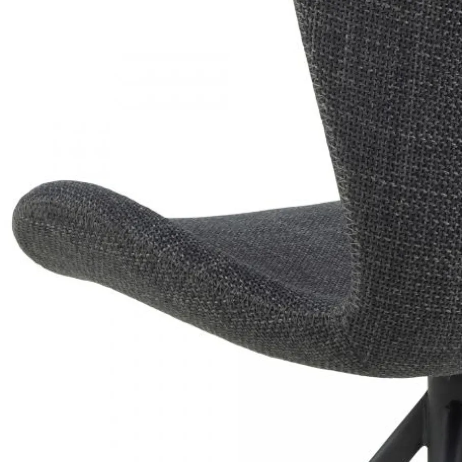 Deze draaibare stoel is bekleed met stof Basel, een materiaal met een mooie geweven structuur. Een slijtvaste en sterke stof van 100% polyester. De donkergrijze kleur is modern en stijlvol en combineert makkelijk.