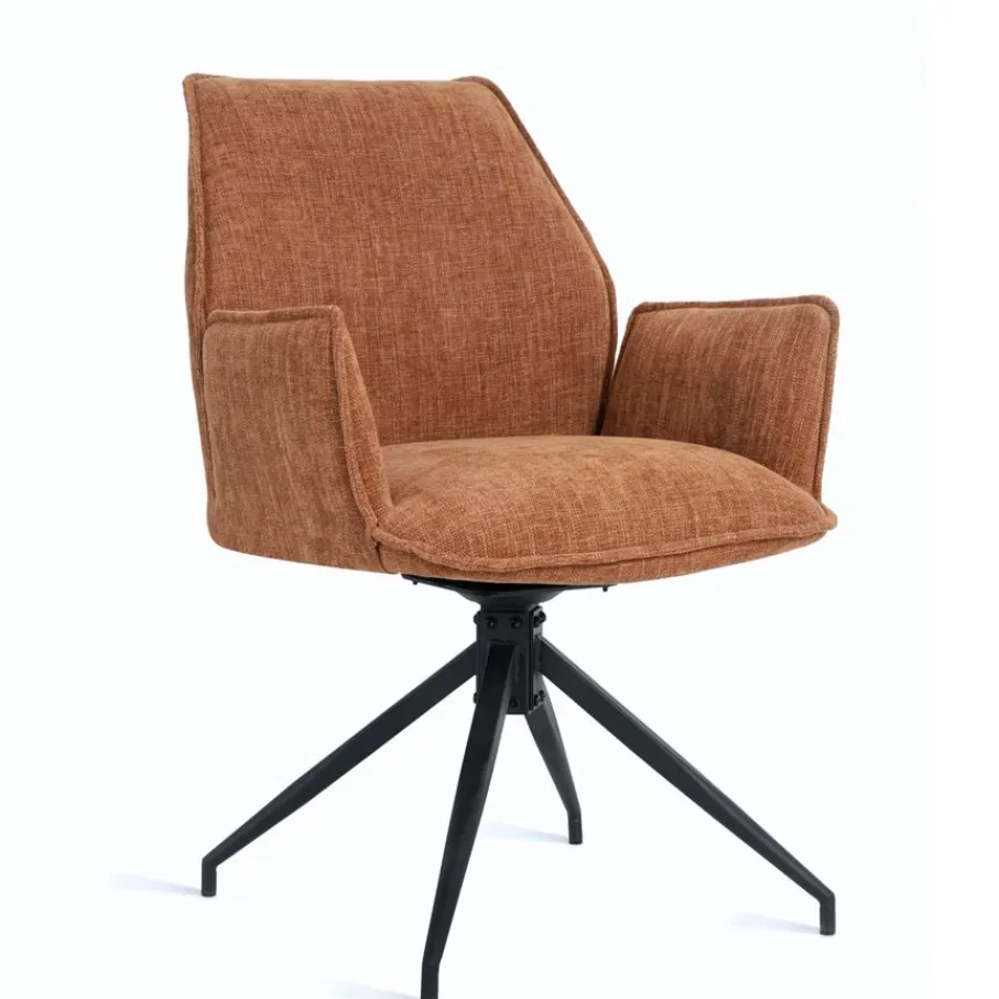 - Luxueuze textielbekleding: De roestbruine stof met fijne structuur biedt een warme en uitnodigende sfeer.