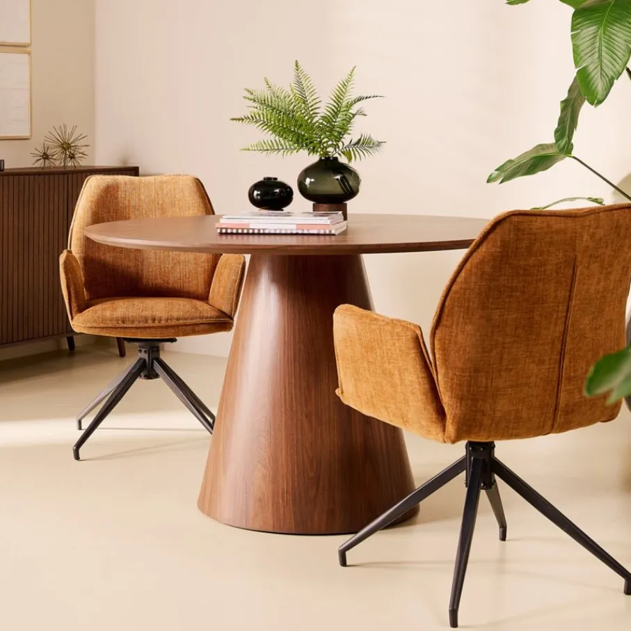 Eetkamerstoel Jerrel is ontworpen met oog voor comfort en kwaliteit. De stoel heeft een dik gevulde zitting en met een zitdiepte van 46 cm en zithoogte van 49 cm zorgt dat ervoor dat jij langdurig comfortabel kunt zitten. Met de draaibare zwarte poot biedt deze stoel niet alleen een stabiele zit, maar ook een praktische draaifunctie (180°) waardoor je gemakkelijk kunt bewegen. De maximale draagkracht is 125 kg.