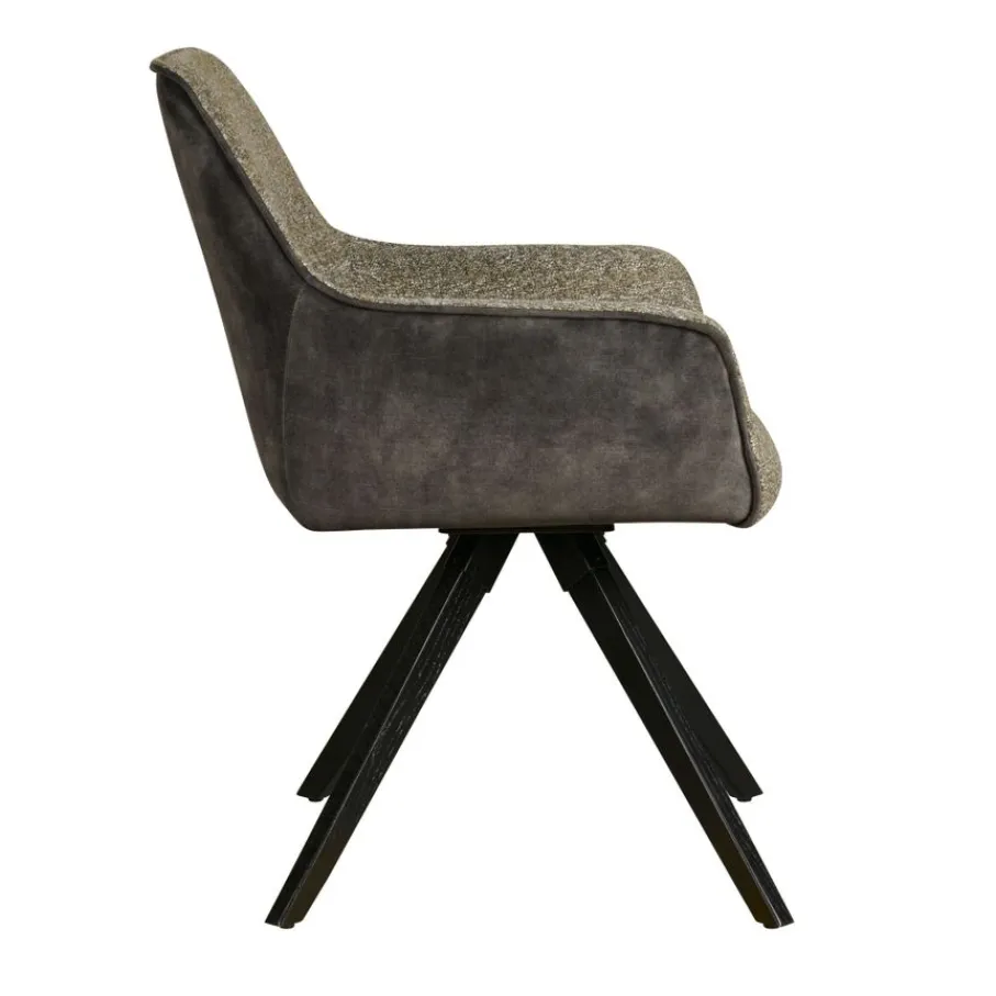 - Robuust en sfeervol: De combinatie van de sterke polyester bekleding en elegante eikenhouten poten zorgt voor een duurzame stoel met een warme uitstraling.