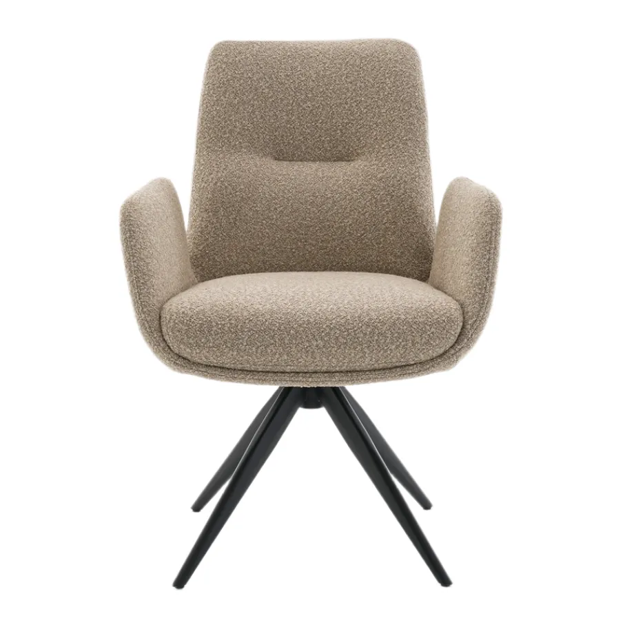 Eetkamerstoel Molly brengt direct een warme en moderne sfeer in jouw eetkamer. Zie je al voor je hoe deze stoel jouw ontbijtjes en diners extra gezellig maakt? Met een bouclé bekleding en strakke zwarte metalen onderstel is Molly niet alleen een lust voor het oog, maar ook een plek waar je heerlijk lang natafelt met vrienden en familie. Eetkamerstoel Molly biedt de perfecte combinatie van stijl en comfort, die elke maaltijd tot een feestje maakt.