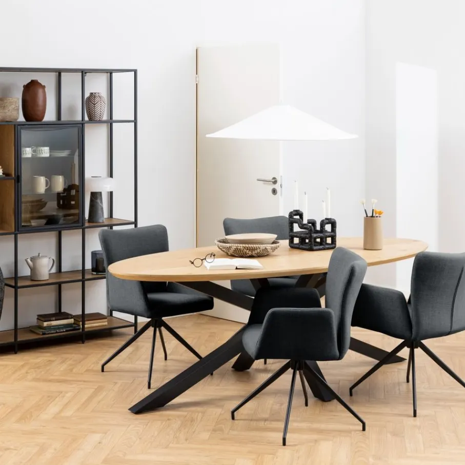 - Flexibel en gezellig: Het draaibare onderstel maakt elke maaltijd een feestje, je schuift moeiteloos aan en draait gezellig mee met elk gesprek.