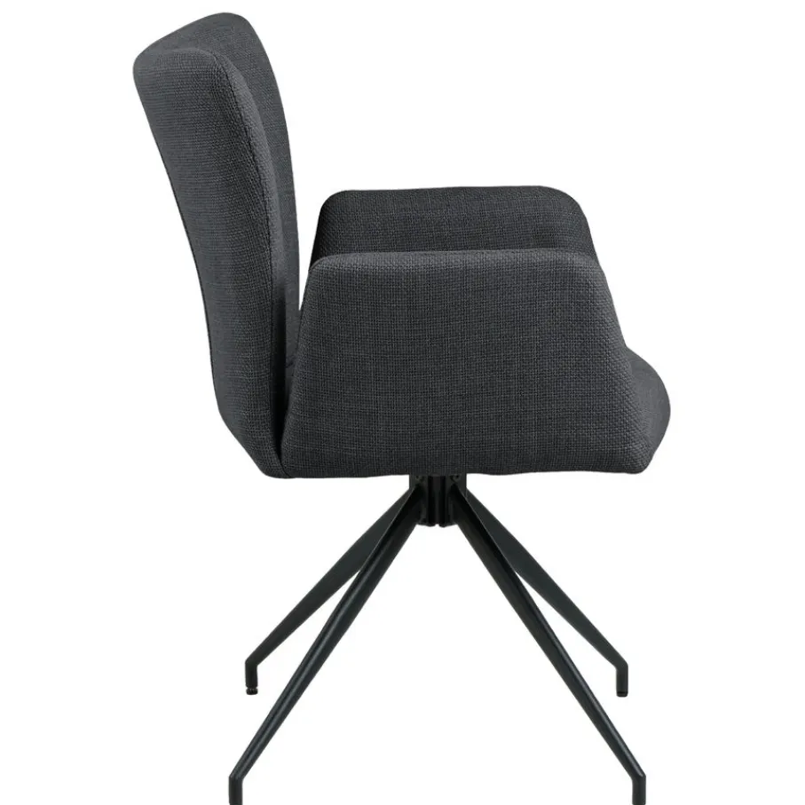 Comfort staat bij de Sverre stoel voorop. Bekleed met de luxe stof Basel, geniet je van een zachte en aangename zitervaring. De donkergrijze bekleding straalt tijdloze elegantie uit en past moeiteloos bij verschillende stijlen.