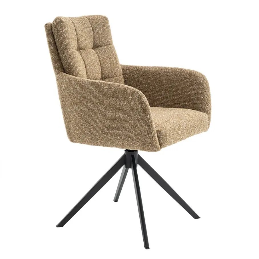 - Luxueuze bouclé bekleding: De curry kleurige stof biedt een rijke uitstraling en voelt zacht aan.
