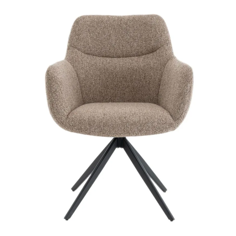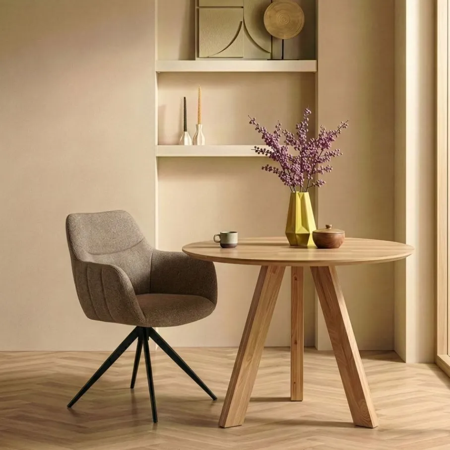Draaibare eetkamerstoel Tibor brengt direct een dosis sfeer en comfort aan jouw eettafel. Zie je het al voor je? Gezellig tafelen met vrienden en familie, waarbij iedereen soepel meedraait in het gesprek. Deze prachtige stoel, uitgevoerd in zachte structuurstof en stevig metaal, combineert moeiteloos een trendy look met pure ontspanning. Een eigentijdse armstoel die elk interieur een warme en uitnodigende uitstraling geeft. Kortom, de draaibare eetkamerstoel Tibor maakt van elke maaltijd een feestje!