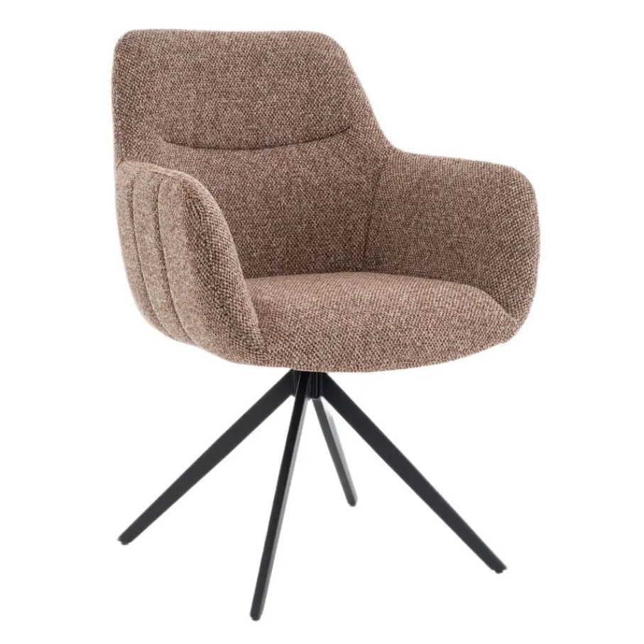Met de draaibare eetkamerstoel Tibor geef jij je eetkamer direct een boost! Deze stoel, met een mooie structuurstof en stevig metalen onderstel, brengt direct sfeer en comfort aan je eettafel. Stel je eens voor hoe gezellig jouw maaltijden worden met familie en vrienden, lekker lang natafelen zonder je te vervelen. Door zijn moderne design en comfortabele zitting past deze armstoel perfect in elke eigentijdse eetkamer. Maak je huis compleet en geniet volop van elk moment met eetkamerstoel Tibor.