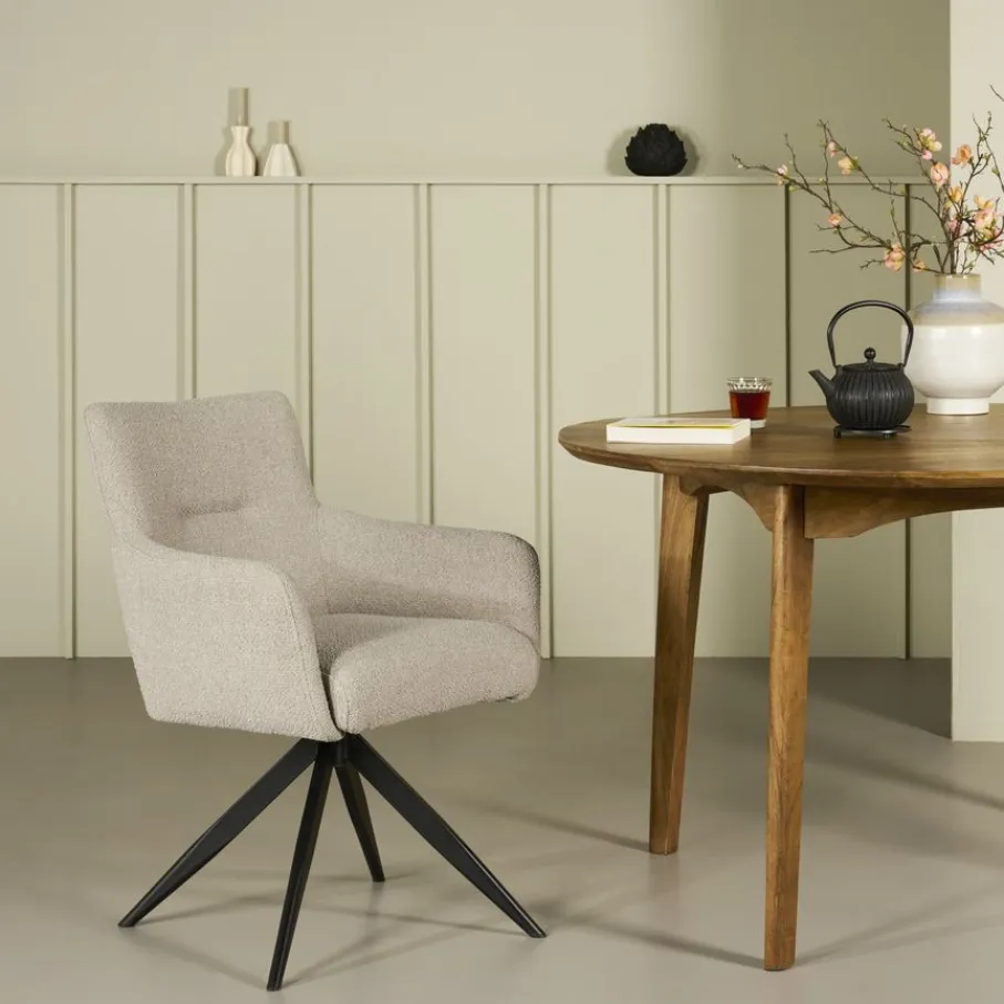 - Stijlvol en eigentijds design: De zwarte spinpoten en neutrale kleuren maken de stoel een perfecte match voor diverse interieurstijlen.