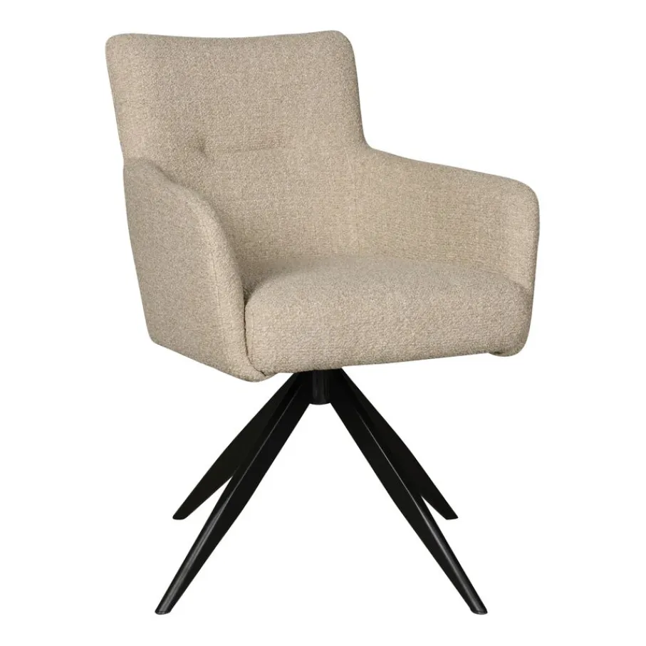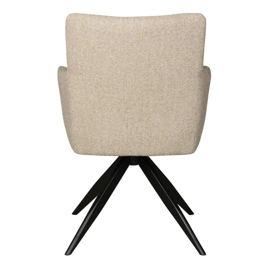 - Luxueuze bouclé bekleding: De rijke structuur van de stof voelt zacht en comfortabel aan, waardoor de stoel een stijlvolle uitstraling heeft.