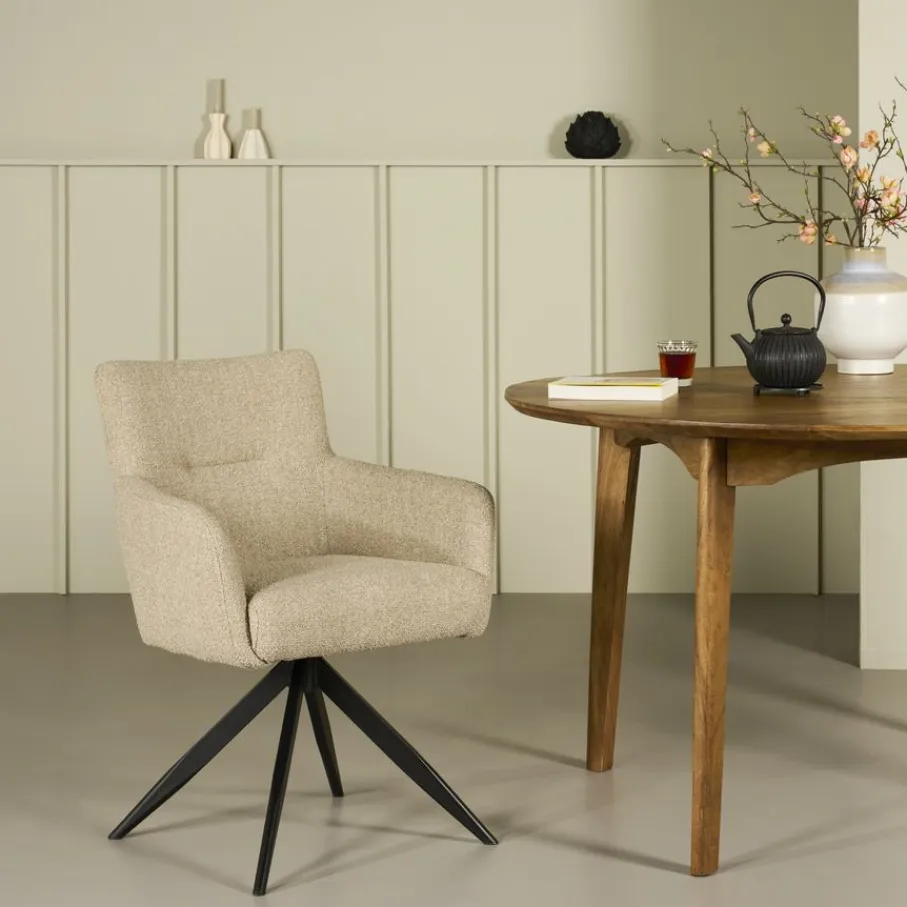 Eetkamerstoel Tonsberg biedt de perfecte ondersteuning. De duurzame combinatie van pocketvering en polyetherschuim, zorgt ervoor dat je urenlang comfortabel kunt zitten. De zitdiepte is 42 cm en de zithoogte is 48 cm. De stoel is volledig roteerbaar, ideaal bij het uitstappen.