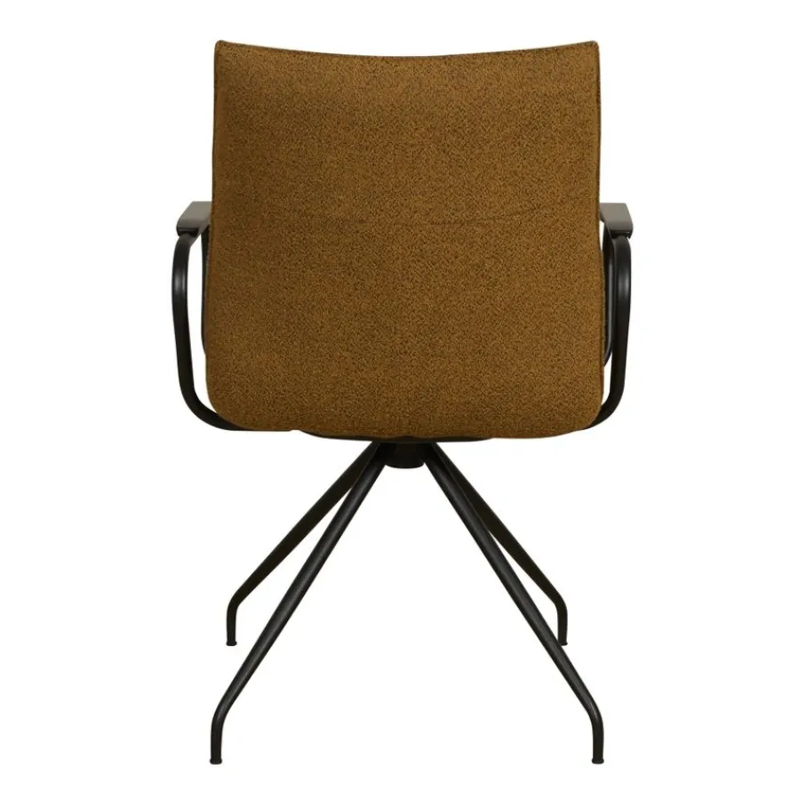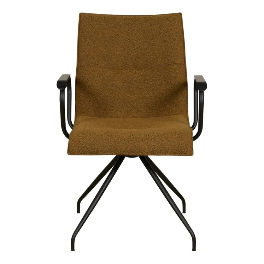 Eetkamerstoel Trondheim is bekleed met stof Alpine in kleur Bronze. Deze zachte bouclé stof van 96% polyester en 4% polyamide, is een sterk en slijtvast materiaal. De bruin gemêleerde tint is een warme cognac kleur.