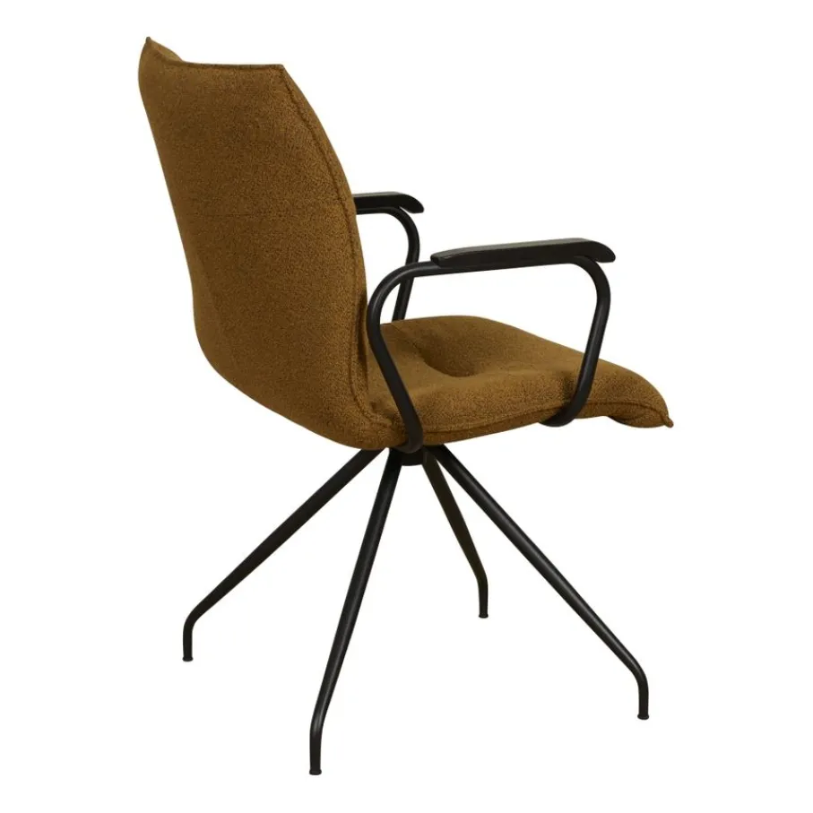 - Luxueuze bouclé bekleding: De cognac kleurige stof voegt warmte en textuur toe.