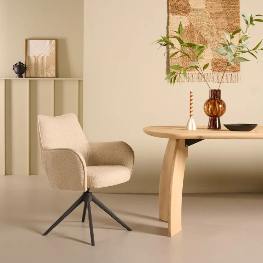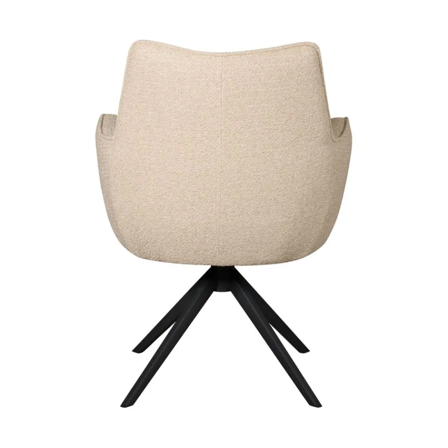 - Robuust en modern: Het stabiele zwarte metalen draaionderstel zorgt voor een stevige basis en geeft de stoel een eigentijdse look.