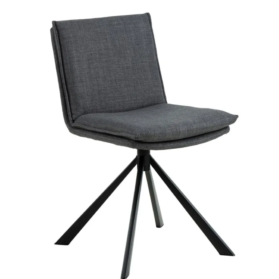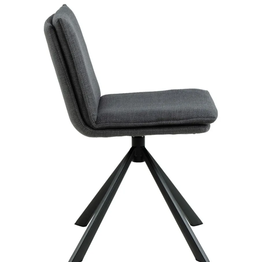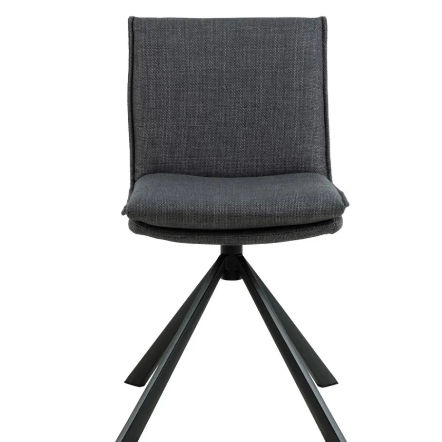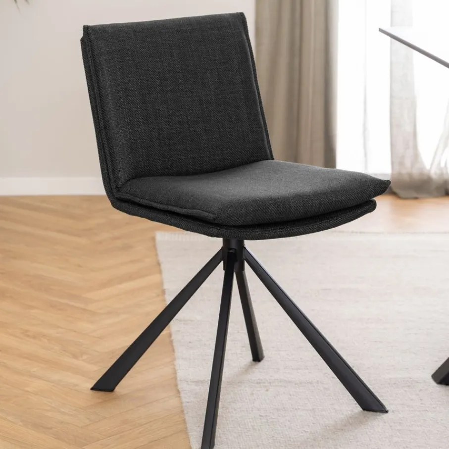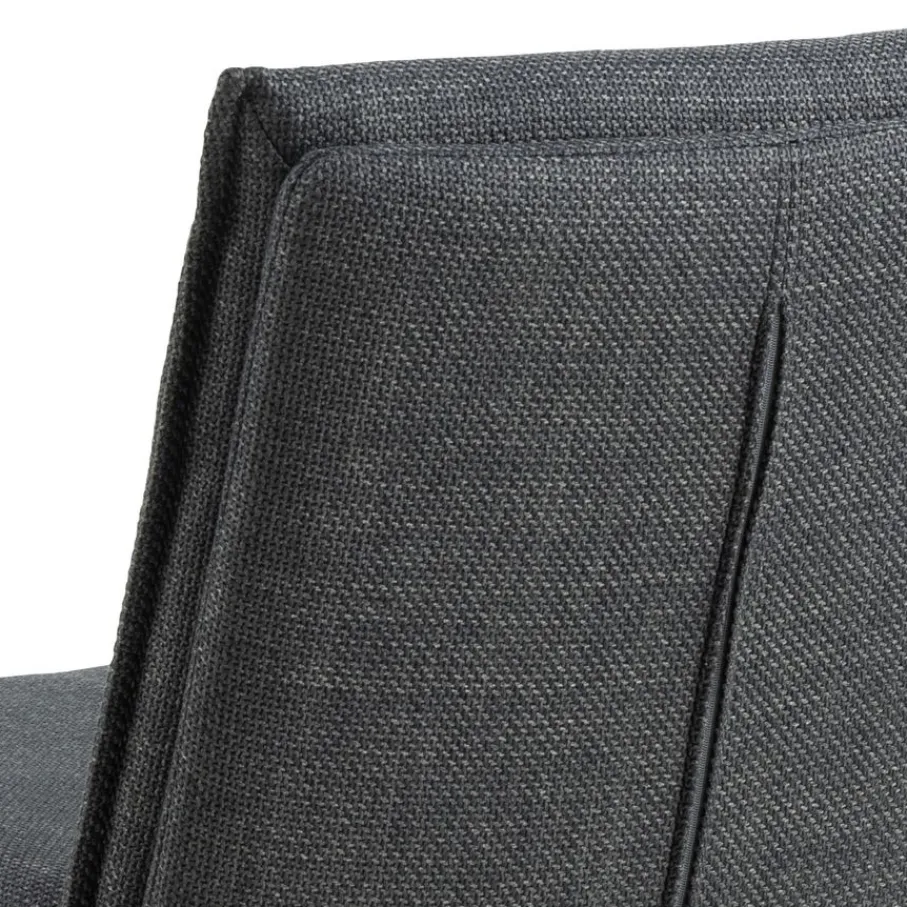 De eetkamerstoel is bekleed met stof Basel, een materiaal met een mooie geweven structuur. Een slijtvaste en sterke stof van 100% polyester. De donkergrijze kleur is modern en stijlvol en combineert makkelijk.