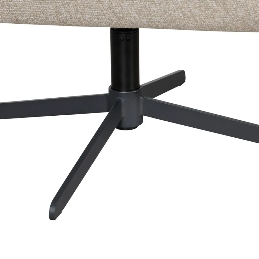 Deze fauteuil is bekleed met stof Lodge, een materiaal van 100% polyester met een robuuste structuur. Het heeft een Martindale van 100.000, wat het geschikt maakt voor intensief woongebruik. Het is sterk en kleur- en slijtvast, en dus duurzaam in gebruik. Deze bouclé stof heeft een beige kleur met subtiele kleurnuances. Dit brengt een vleugje elegantie in elke ruimte, waardoor je huis met draaifauteuil Swift nét dat beetje extra sfeer krijgt.