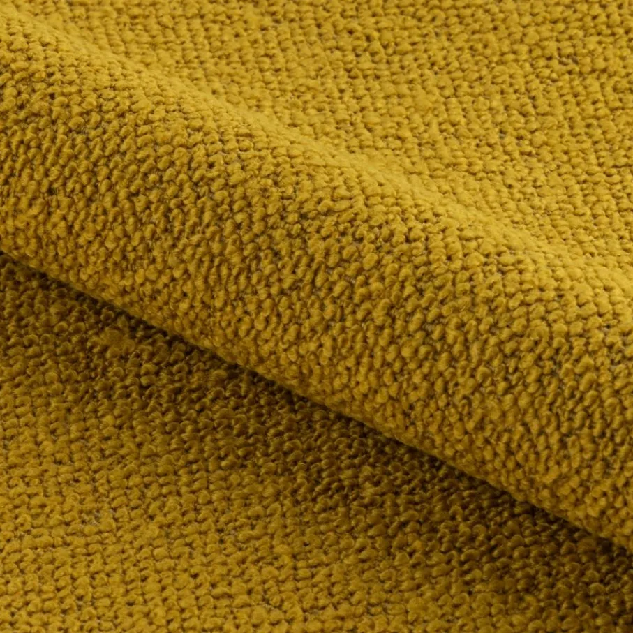 De draaifauteuil is bekleed met luxe structuurstof Monza. Deze zachte en sterke stof is een combinatie van polyester en acryl. De kleur is mustard, een okergele gemêleerde tint.