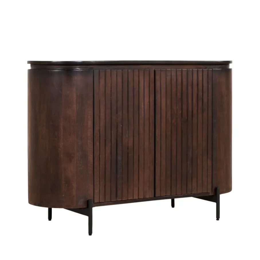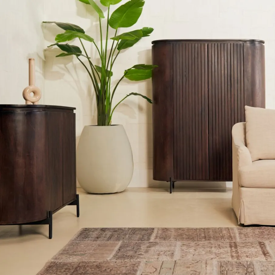 - Geef jouw interieur een unieke en persoonlijke touch dankzij de trendy ronde vormen, het stijlvolle ribbelpatroon op de deuren en het elegante ‘zwevende’ blad.