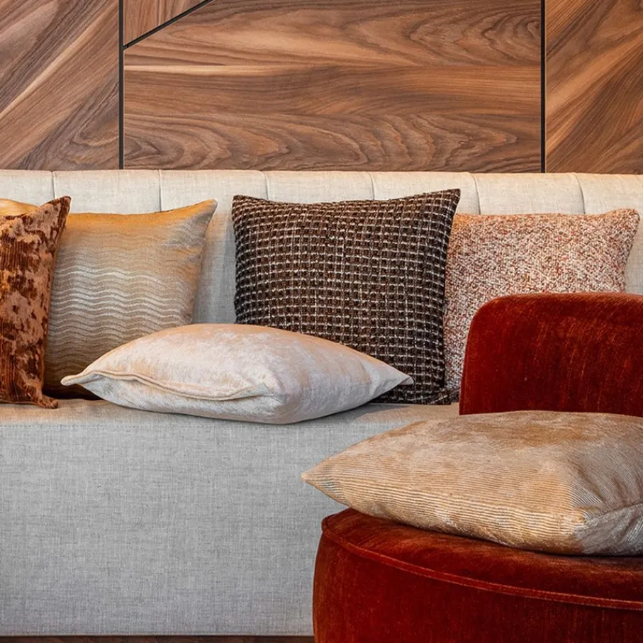 - Het compacte formaat van 45×45 cm is super veelzijdig, maar voor een extra grote bank of royale loungehoek is een mix van verschillende formaten nét iets sfeervoller.