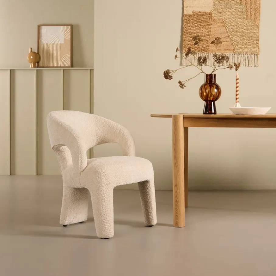 - Luxueuze Bouclé bekleding: De zachte textuur en crèmekleur bieden een elegante en warme uitstraling.