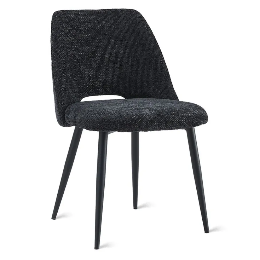 Jouw comfort staat voorop met eetkamerstoel Brogan. De stoel heeft een zithoogte van 49 cm, perfect om aan tafel te schuiven en langdurig comfortabel te zitten. De zwart metalen poten zorgen voor een stabiele basis en een modern contrast met de bekleding. Het maximale draagvermogen is 120 kg.